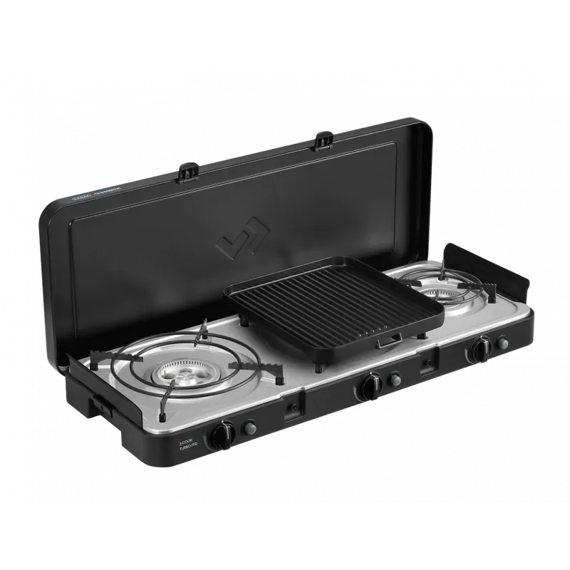 Zamień zwykłe gotowanie na kempingu w kulinarną przyjemność dzięki kuchence 3 Cook Turbo FFD. Ta wyjątkowa, 3-palnikowa kuchenka została zaprojektowana z myślą o miłośnikach komfortu i funkcjonalności podczas podróży. Wyposażona w ceramiczne płyty do gotowania i grillowania z powłoką GreenGrill, pozwala na przygotowywanie zdrowych, zróżnicowanych posiłków przy minimalnym wysiłku i łatwym czyszczeniu.